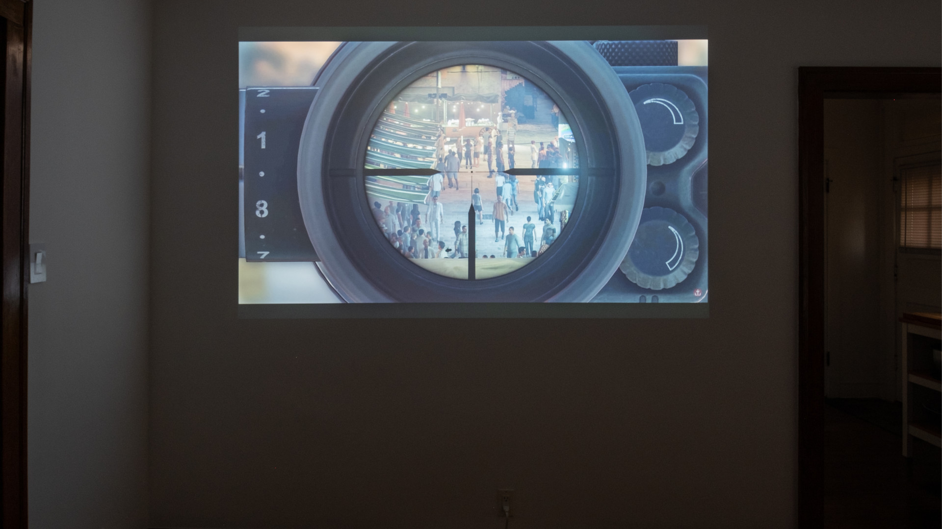 - Taking footage from the stealth-action game Hitman (2016), the player watches the world through the scope of a Sieger 300 Ghost sniper rifle. The careful analysis of NPC behaviors, environmental triggers, and timed events that used to determine intentional strategic action now gives way to aimless observation.